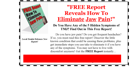 Click Here for FREE Report on how to get rid of TMJ Jaw Pain.