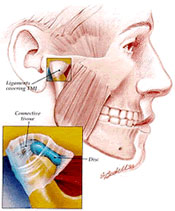 meniscus, which normally acts as a buffer between the jaw and the skull, that