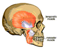 temporalis. When these large muscles are in spasm, the patient is often